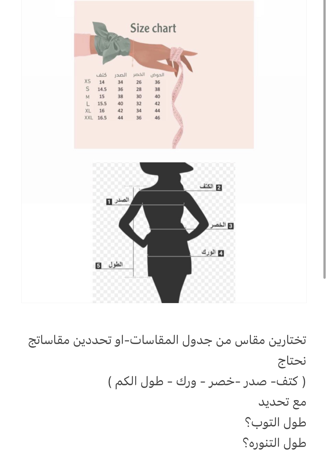 دليل المقاسات